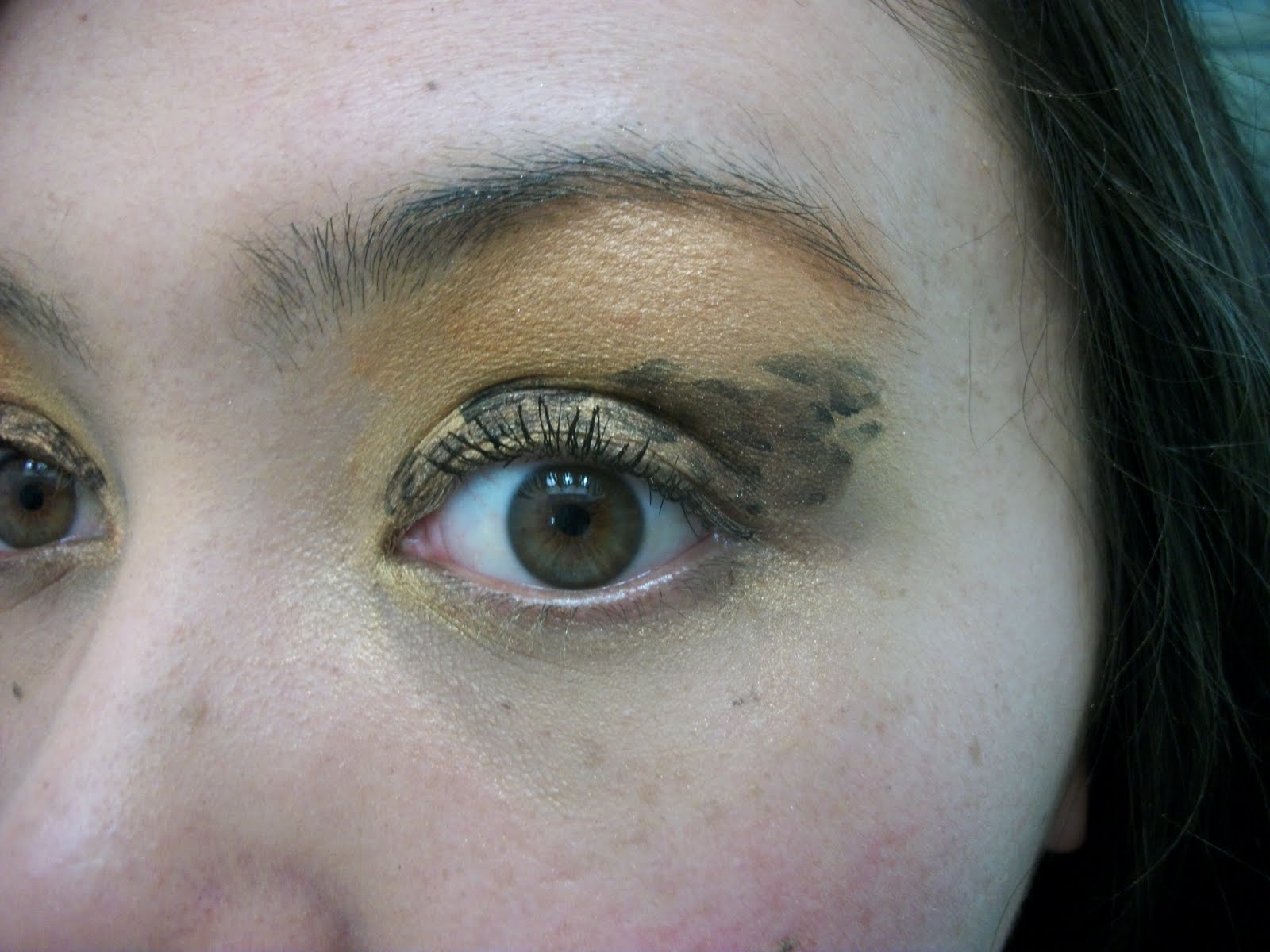 Step Two: Take a thin brush (I used MAC 266, a flat angled brush) to draw on the 'spots' or the black outlines of spots with a heavy liner, like MAC Blacktrack fluidliner. Pencil liners tend to not be thick enough, so go heavy handed to give the effect, but thin lines so it doesn't get too messy.